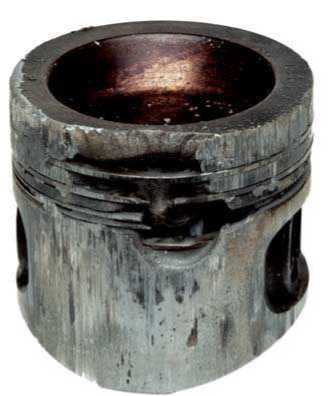 - Днище поршня оплавлено, а участок колец отчасти прожжён насквозь (рис. 3).