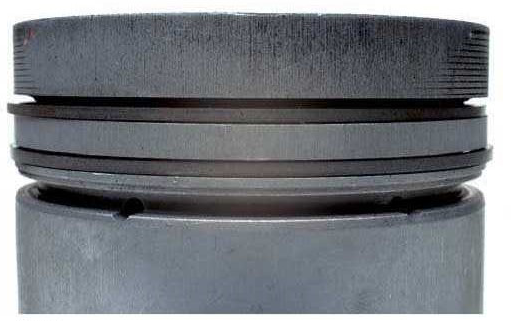 ...и первое поршневое кольцо изношено значительно сильнее, чем третье, тогда загрязнения попадают в камеру сгорания через систему впуска цилиндра, то есть сверху. Причиной этого является или разгерметизация, или грязевые отложения, которые не были удалены до начала ремонтных работ.
